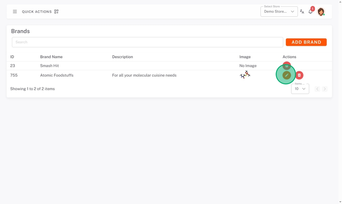 1. Click the edit button (pencil icon) next to the custom brand.