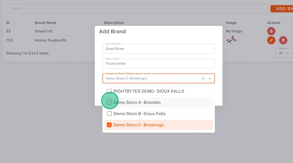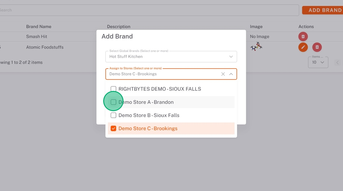 7. Click the Assign to Stores dropdown, and check all stores you want this brand in.