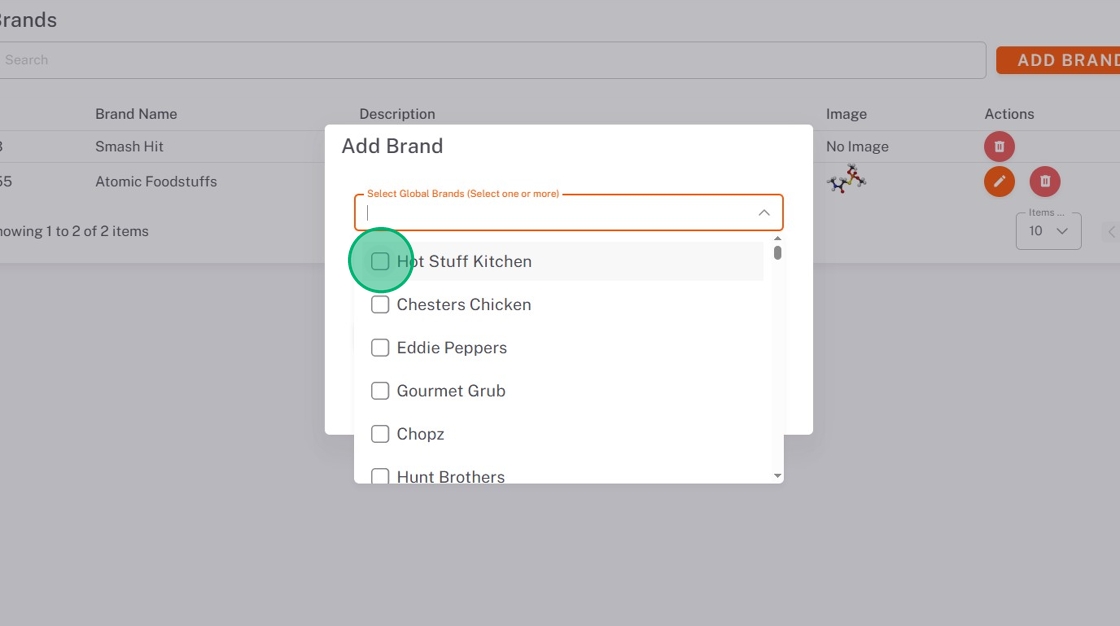 6. Click the Select Global Brands dropdown, and check boxes of any brands needed.