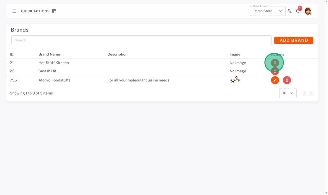 1. Click delete button (trash icon) next to the brand.