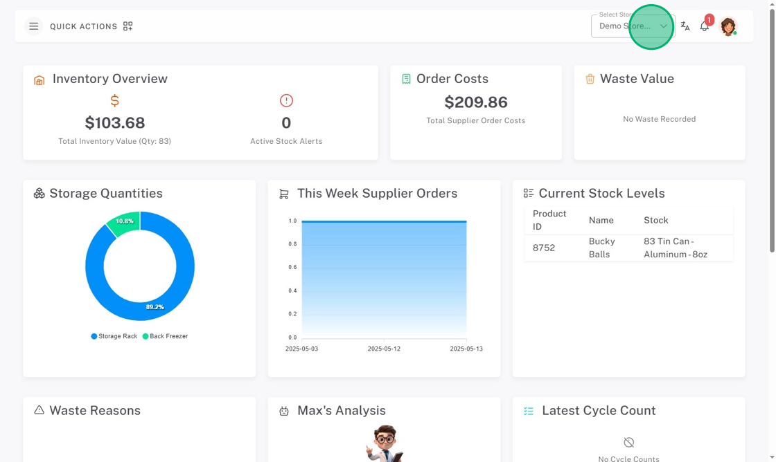 2. Choose your store from the Select Store dropdown.