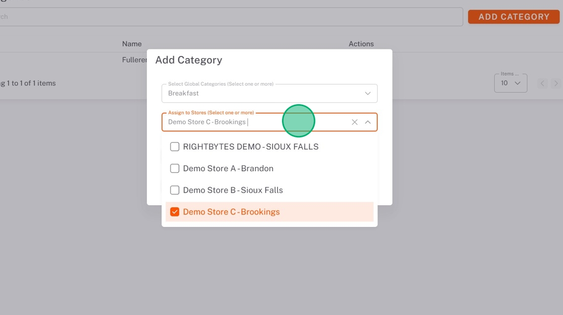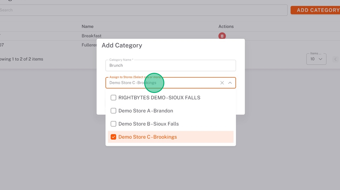 4. Click the Assign to Stores dropdown, and check all stores that need this category.