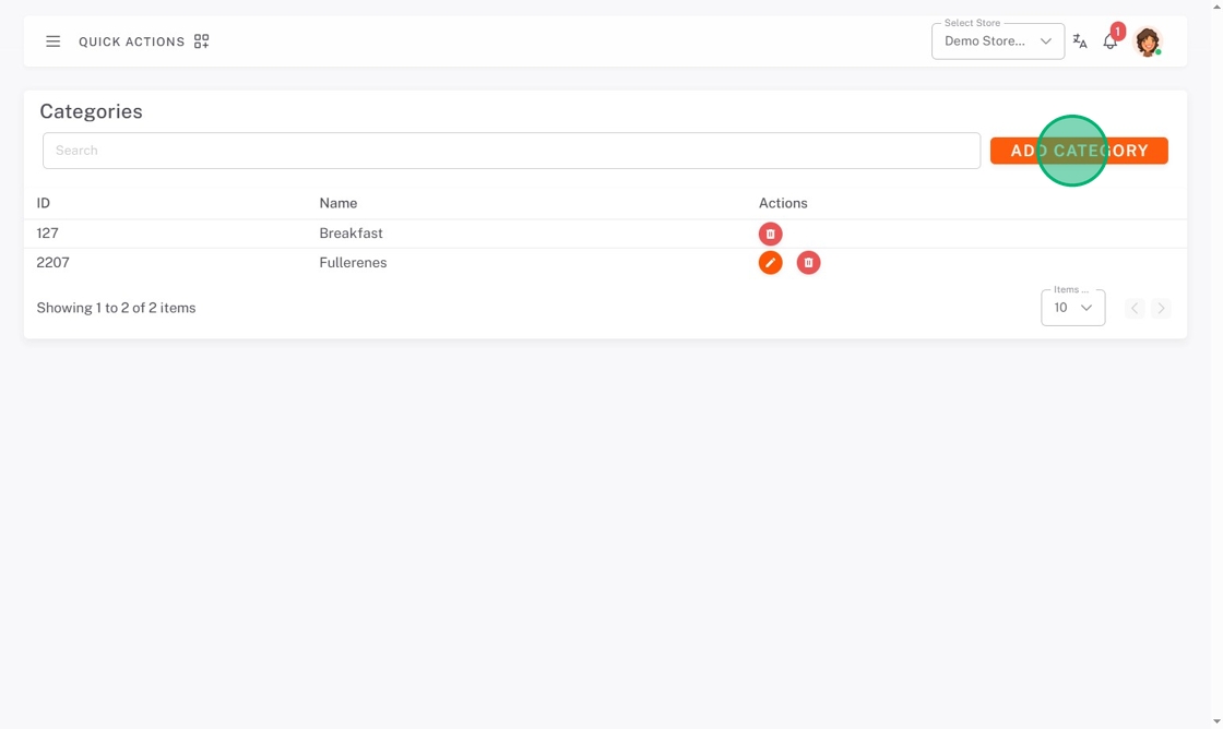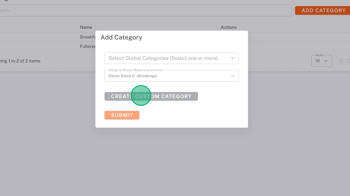 - Changes to the custom categories will only be saved to the store you are currently set to.