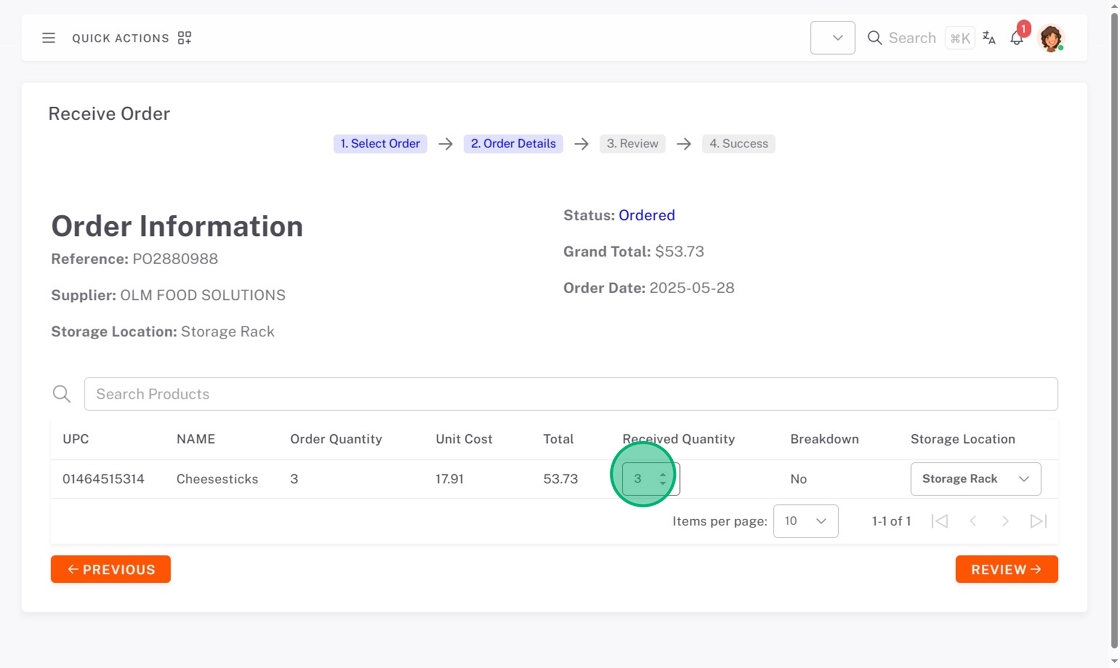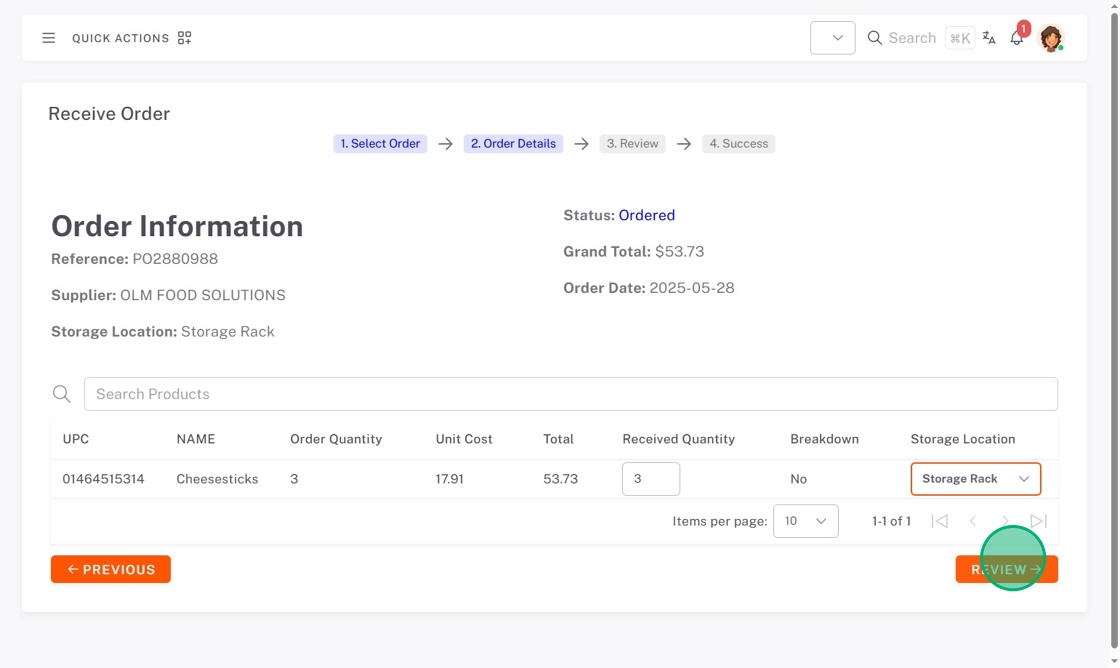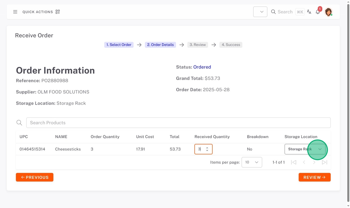 6. The Storage Location will set to the default. If storing somewhere else, click the dropdown and select the storage location.